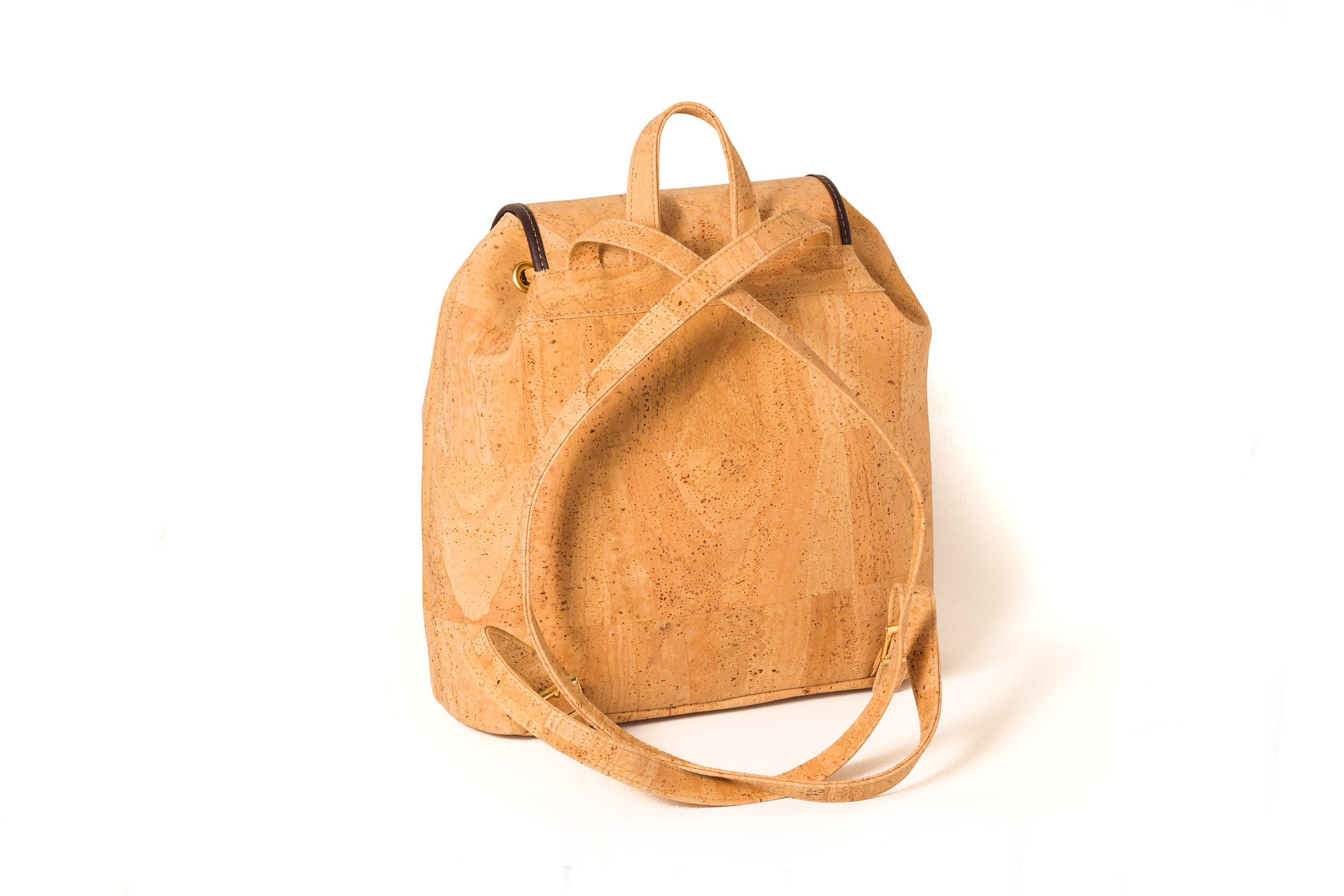 Mochila em cortiça com duas alças para os ombros ajustáveis.