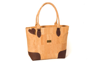 Mala em cortiça, que fecha com fecho eclair, com duas alças.Um bolso de fecho eclair exterior e outro interior.