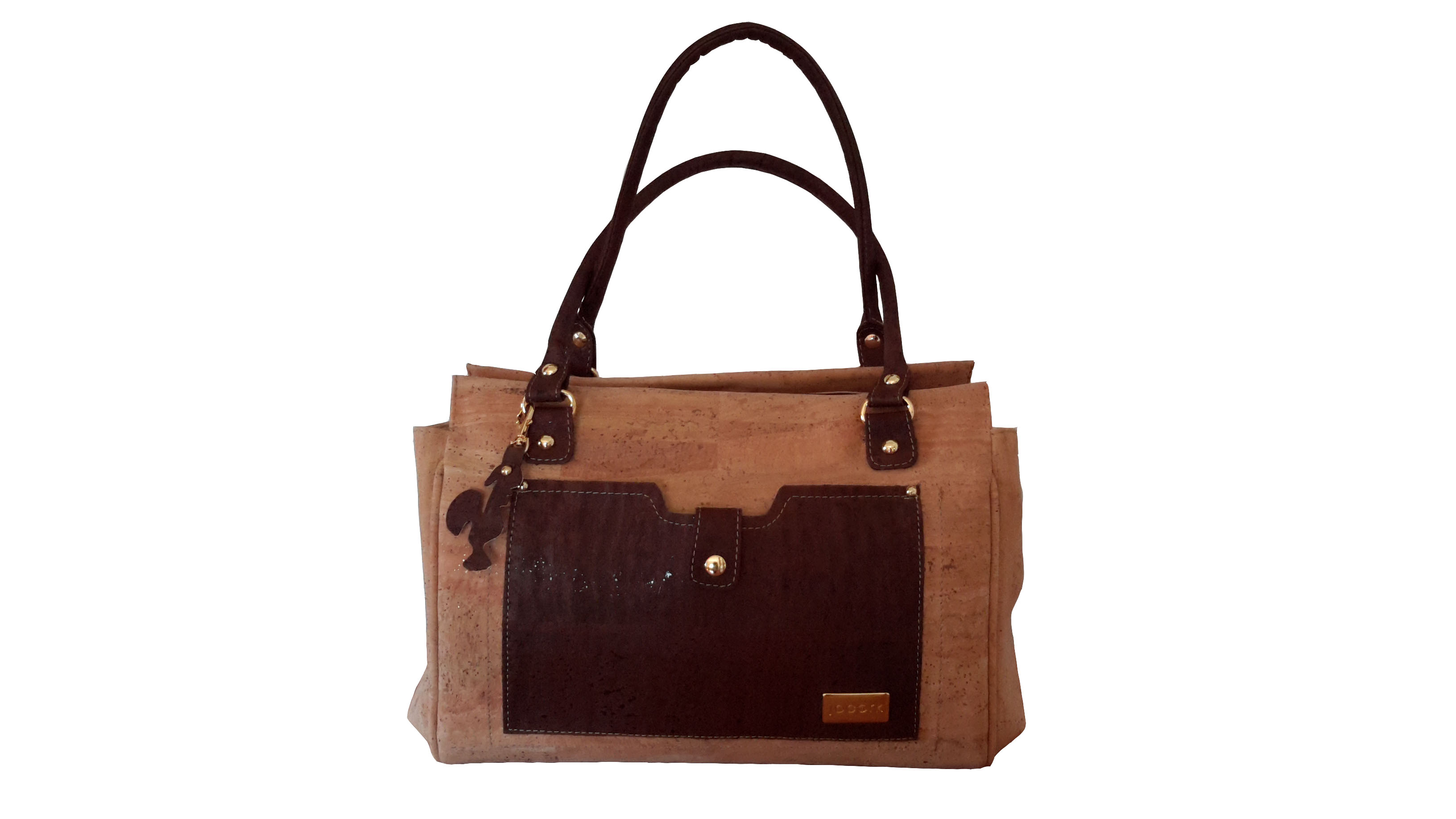 Cork bag with two straps, closes with a zip.